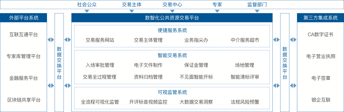 公共資源交易平臺(tái)是公司面向各級(jí)公共資源交易中心客戶開發(fā)的一套集服務(wù)、交易、監(jiān)管為一體化的信息化平臺(tái)。運(yùn)用大數(shù)據(jù)、人工智能等技術(shù),實(shí)現(xiàn)“資源共享、集中服務(wù)、統(tǒng)一管理、依法監(jiān)督”,為公共資源交易中心構(gòu)建公正開放、競(jìng)爭(zhēng)有序、監(jiān)管有力、服務(wù)到位的公共資源交易管理服務(wù)體系。系統(tǒng)包括政府采購、建設(shè)工程、產(chǎn)權(quán)交易、土地(礦權(quán))交易四大業(yè)務(wù)體系和內(nèi)部綜合辦公系統(tǒng),既可以整體規(guī)劃建設(shè),又可以根據(jù)實(shí)際情況任意單獨(dú)或組合建設(shè)。